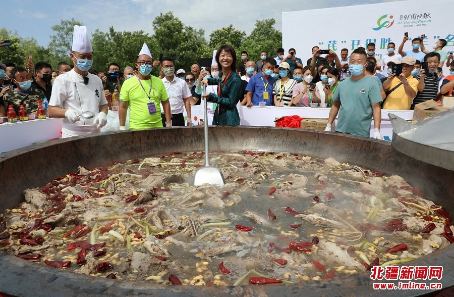 展會現(xiàn)場一口大鍋燉20只羊供人品嘗,吸引了眾多市民和與會者 記者 張楊攝影