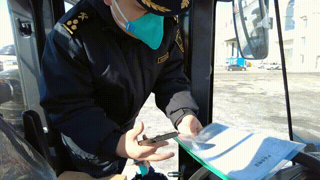 海關(guān)工作人員正在對(duì)出口工程機(jī)械車輛進(jìn)行登臨檢查。