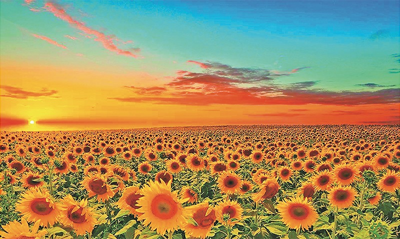 全國葵花籽產量約70%來自內蒙古。圖為巴彥淖爾市向日葵種植區(qū)。 內蒙古日報社供圖