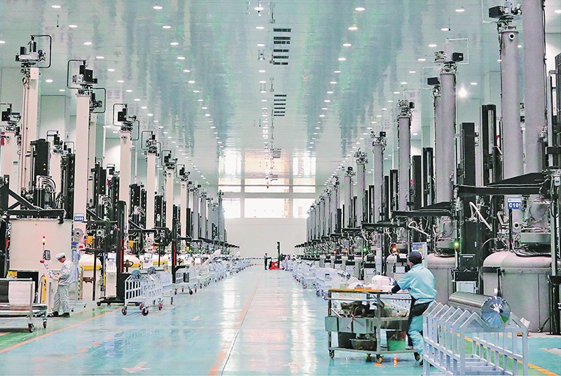 內蒙古與時俱進優(yōu)化能源資源開發(fā)利用方式,推動由化石能源大區(qū)向清潔能源大區(qū)轉變。圖為位于包頭市的雙良光伏產業(yè)園單晶硅生產車間(2022年10月20日攝)。