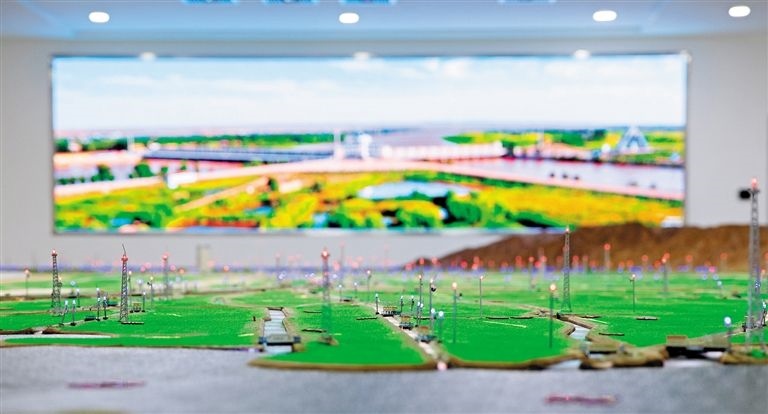 河套灌區(qū)是我國3個特大型灌區(qū)之一,也是我國重要的糧油生產(chǎn)基地,現(xiàn)已形成完整的7級灌排體系,引黃灌溉面積達(dá)1000多萬畝。160平方米的實(shí)體實(shí)時數(shù)字沙盤是微縮版的“河套灌區(qū)”,可以清晰地看到整個灌區(qū)的灌排體系。
