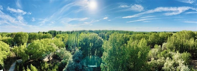初夏時(shí)節(jié),位于巴彥淖爾市臨河區(qū)烏蘭圖克鎮(zhèn)的國(guó)營(yíng)新華林場(chǎng)內(nèi)綠樹(shù)掩映、鳥(niǎo)鳴聲聲,鄰近的湖泊波光粼粼,微風(fēng)吹過(guò),溫潤(rùn)清涼。
