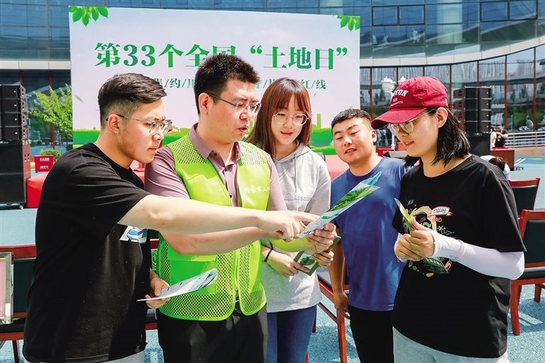 6月25日,自治區(qū)自然資源廳工作人員正在向市民宣傳耕地保護(hù)制度和節(jié)約集約用地制度的舉措和成效。當(dāng)天是第33個全國土地日,宣傳主題是“節(jié)約集約用地嚴(yán)守耕地紅線”。記者孟和朝魯攝