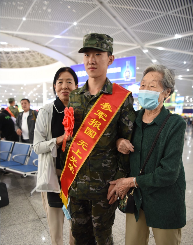 在新兵歡送現(xiàn)場,一位83歲高齡的老人田粉仙送外孫出征,這一幕讓在場的人感動不已。老人告訴筆者:“老伴就是軍人,家里好幾個子女也都當(dāng)過兵,希望外孫也能向家人學(xué)習(xí),到部隊要好好干,聽黨的話,為國家出力......” 姥姥樸實的話語寄托著對外孫深情的希望與殷切的期盼。