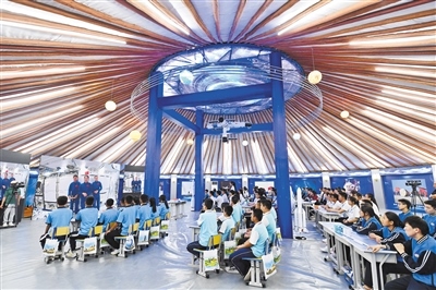 9月21日,120名中學(xué)生在阿拉善盟額濟(jì)納旗蒙古包地面課堂與空間站“同頻共振”,聆聽來(lái)自太空的聲音。內(nèi)蒙古日?qǐng)?bào)社融媒體記者 王磊 攝