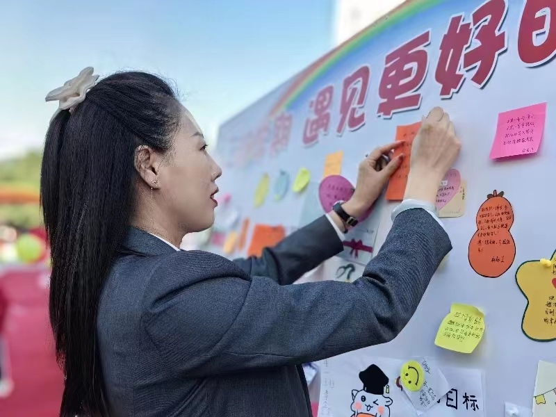 開學(xué)第一天,師生們踏著歡快的音樂步入校園,寫下新學(xué)期目標(biāo),擊鼓明智,進(jìn)入教學(xué)樓,班主任老師上開學(xué)第一課。