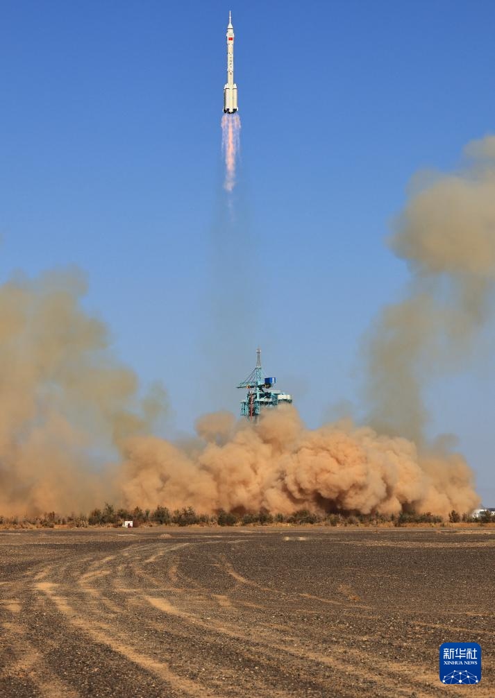 10月26日11時14分,搭載神舟十七號載人飛船的長征二號F遙十七運載火箭在酒泉衛(wèi)星發(fā)射中心點火發(fā)射。約10分鐘后,神舟十七號載人飛船與火箭成功分離,進(jìn)入預(yù)定軌道,航天員乘組狀態(tài)良好,發(fā)射取得圓滿成功。新華社記者 劉金海 攝