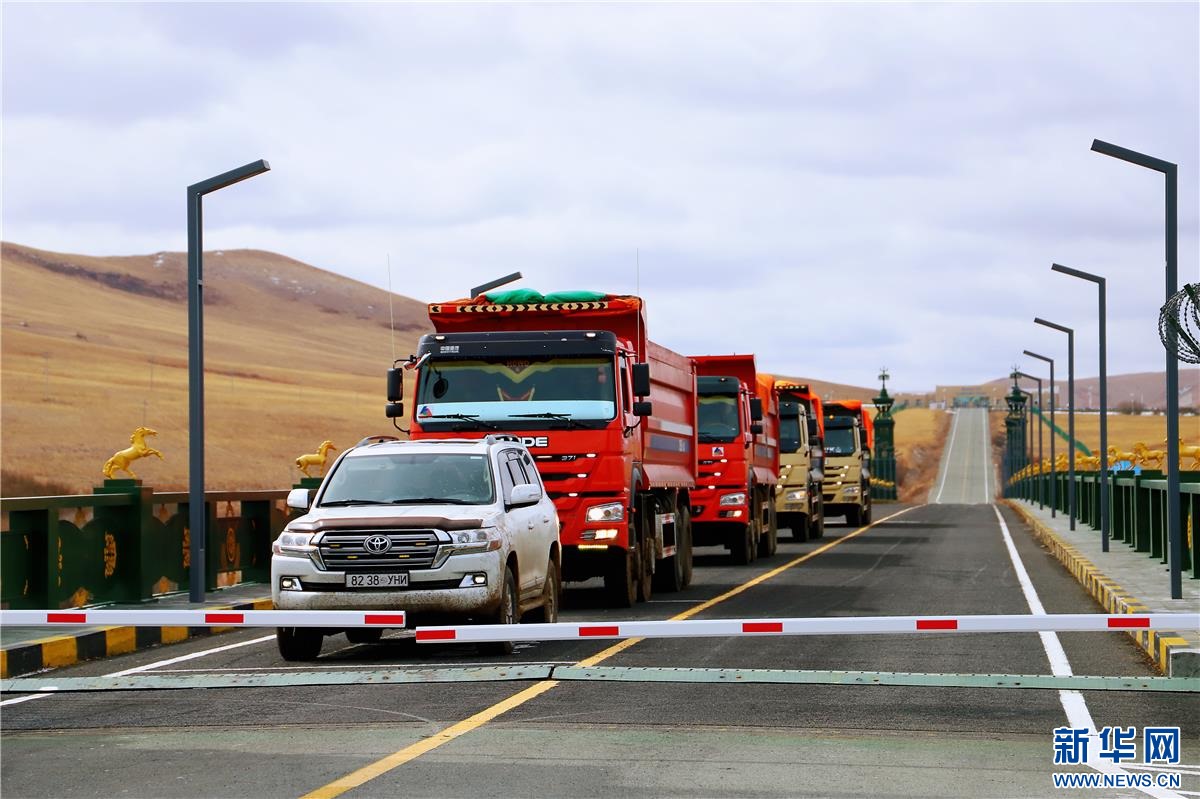 大卡車駛過珠恩嘎達(dá)布其口岸。資料圖 ??