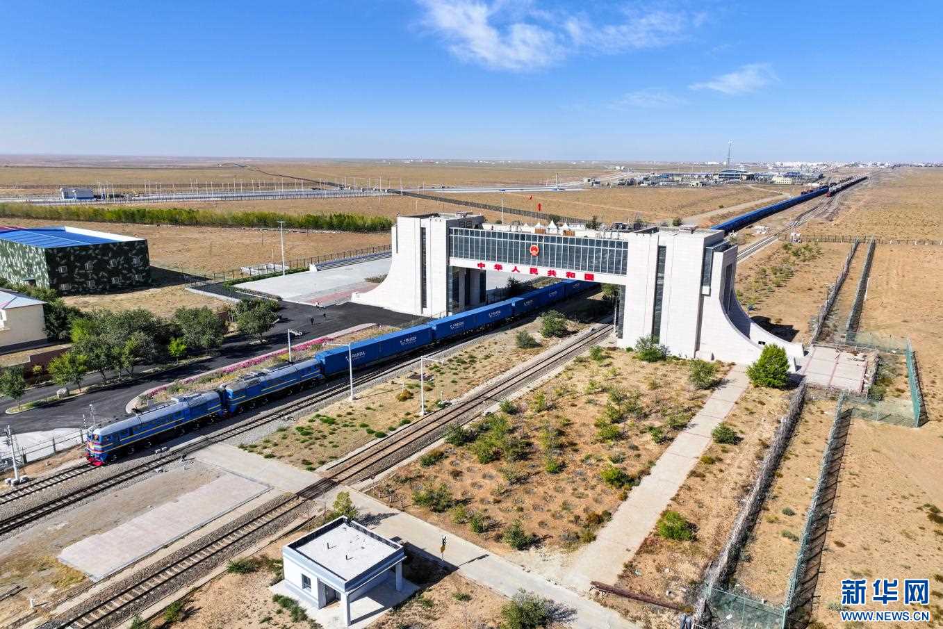 中歐班列駛出滿洲里國門。新華網(wǎng)發(fā) (李新軍 攝)