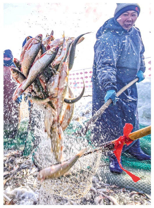 ▲1月13日,達(dá)里湖漁場(chǎng)的工作人員在撈魚裝箱。日前,內(nèi)蒙古達(dá)里湖冬捕旅游季在赤峰市克什克騰旗拉開(kāi)帷幕。此次活動(dòng)包括祭湖儀式、開(kāi)湖捕魚、文藝展演等多個(gè)項(xiàng)目,吸引眾多游人前來(lái)觀看。新華社記者彭源攝