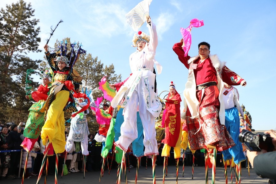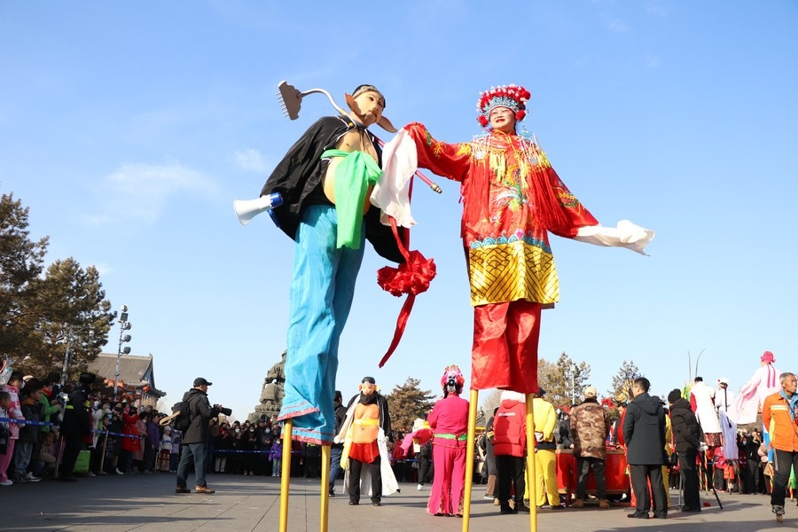 現(xiàn)場人潮涌動,歡聲笑語此起彼伏。扭秧歌隊伍身著色彩斑斕的服裝,手持彩扇,隨著歡快的音樂節(jié)奏,邁出輕盈的步伐,每一個動作都充滿了力量感和韻律感。他們的表情歡快,笑容燦爛,將歡樂傳遞給每一位觀眾。與此同時,踩高蹺也吸引了眾多觀眾的目光。演員們踩著高高的木蹺,身著華麗的戲服,扮演著各種角色,自如地行走、跳躍,引得觀眾陣陣喝彩。