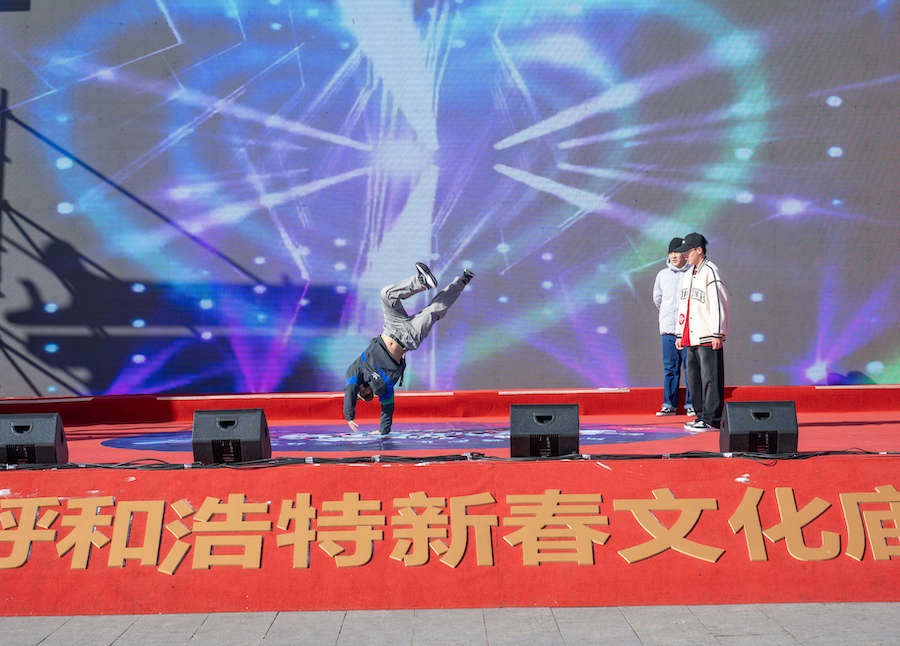 北疆新聞呼和浩特2月22日電(記者 楊凈毓 林則志)動(dòng)感的音樂(lè),時(shí)尚炫酷的舞姿,100余名街舞愛(ài)好者齊聚內(nèi)蒙古呼和浩特大召?gòu)V場(chǎng),為市民、游客上演了一場(chǎng)精彩絕倫的街舞盛宴。