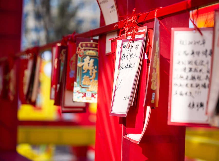 “祝福祖國:國泰平安,風調雨順,祝福自己:生意興隆,財源滾滾”“中考之路,順風順水,金榜題名”“平安吉祥,龍年順遂”“暴富”……