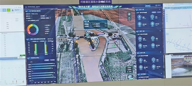 在河套灌區(qū)水量信息化監(jiān)測(cè)中心50米長(zhǎng)的數(shù)字屏幕上,“數(shù)字總干渠”灌溉運(yùn)行決策支持系統(tǒng)只是其中一項(xiàng)內(nèi)容,在這個(gè)數(shù)字屏幕上,還能看到黃河三盛公水利樞紐工程的實(shí)時(shí)畫面、河套灌區(qū)渠溝道樞紐工程實(shí)時(shí)運(yùn)行現(xiàn)狀、總干渠5座樞紐工程運(yùn)行情況視頻、河套灌區(qū)水量調(diào)度系統(tǒng)、內(nèi)蒙古黃河實(shí)時(shí)視頻監(jiān)控等各種實(shí)時(shí)監(jiān)控畫面和實(shí)時(shí)數(shù)據(jù),先進(jìn)的科技讓人震撼。