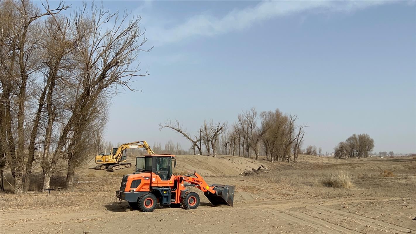 2月28日,春意萌動(dòng),萬物生長(zhǎng)。進(jìn)入巴彥淖爾市臨河區(qū)國(guó)營(yíng)新華林場(chǎng),一幅紅彤彤的對(duì)聯(lián)——“生態(tài)優(yōu)先綠色發(fā)展勇?lián)姑晃菲D難”映入眼簾,與兩旁高高掛起的紅燈籠相映成趣。另一邊,數(shù)臺(tái)大型機(jī)械往來穿梭,開始了今年的植綠工作。