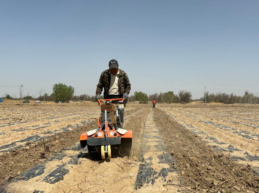 連日來,在新華林場育苗基地里,工人們正在用手扶式旋耕機(jī)進(jìn)行旋地作業(yè),將樹苗間一塊塊板結(jié)的土壤打散。“旋地可以防止土地板結(jié)龜裂導(dǎo)致的水分流失,提高樹苗成活率,為提高育苗造林質(zhì)量打好基礎(chǔ)?!毙氯A林場職工呂林澤介紹說,4月以來,林場采用扦插育苗的方式培育330畝楊樹、柳樹等喬木,采用播種育苗的方式培育170畝楊柴、紫穗槐等灌木,育苗工作進(jìn)展順利。