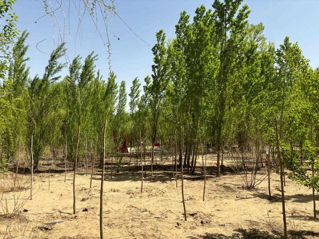 “今年,林場核心作業(yè)區(qū)周邊補(bǔ)植補(bǔ)造1萬多株新疆楊;林場其他作業(yè)區(qū)補(bǔ)植補(bǔ)種300多畝苗木,主要有四季玫瑰、紫穗槐、楊柴、梭梭等,4月下旬已全部種植完畢。”新華林場副場長葛文斌說。