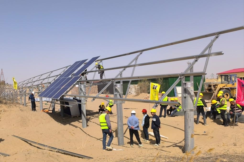 記者在新華林場民樂作業(yè)區(qū)看到,與其他作業(yè)區(qū)的造林治沙方式相比,這里既沒有栽樹,也沒有種草,而是在沙地里“栽”下了一個(gè)個(gè)水泥樁。葛文斌告訴記者:“這里是防沙治沙和風(fēng)電光伏一體化工程項(xiàng)目區(qū)。‘栽’水泥樁就是為后期安裝光伏板、建設(shè)光伏電站做準(zhǔn)備。在光伏板上發(fā)電的同時(shí),我們還可以在光伏板下種植固沙植物,幫助地表植被恢復(fù),達(dá)到既能發(fā)電‘生金’又能實(shí)現(xiàn)沙化土地縮減的雙重功效?!保ㄓ浾呃钤破?、侯維軼)