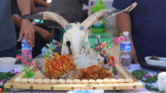 烤全羊、手抓肉、肚包肉……活動(dòng)現(xiàn)場(chǎng),參賽選手們各顯神通,用他們精湛的廚藝為大家呈現(xiàn)了一場(chǎng)全羊盛宴。來(lái)自不同地區(qū)的36道羊肉系列菜,現(xiàn)場(chǎng)烹飪制作并供嘉賓、游客品嘗,評(píng)委從每道菜品的食材、烹飪方法、口味色澤、擺盤設(shè)計(jì)等方面入手,進(jìn)行現(xiàn)場(chǎng)打分排名。一道道精心烹飪的美食香飄四座,激發(fā)了現(xiàn)場(chǎng)觀眾的食欲。大家紛紛圍上前來(lái),爭(zhēng)相品嘗?!把蛉膺€有這么多的做法,真是讓人大開(kāi)眼界。”“太好吃了,羊肉都很鮮美!”現(xiàn)場(chǎng)游客無(wú)一不發(fā)出贊嘆?!?/p>