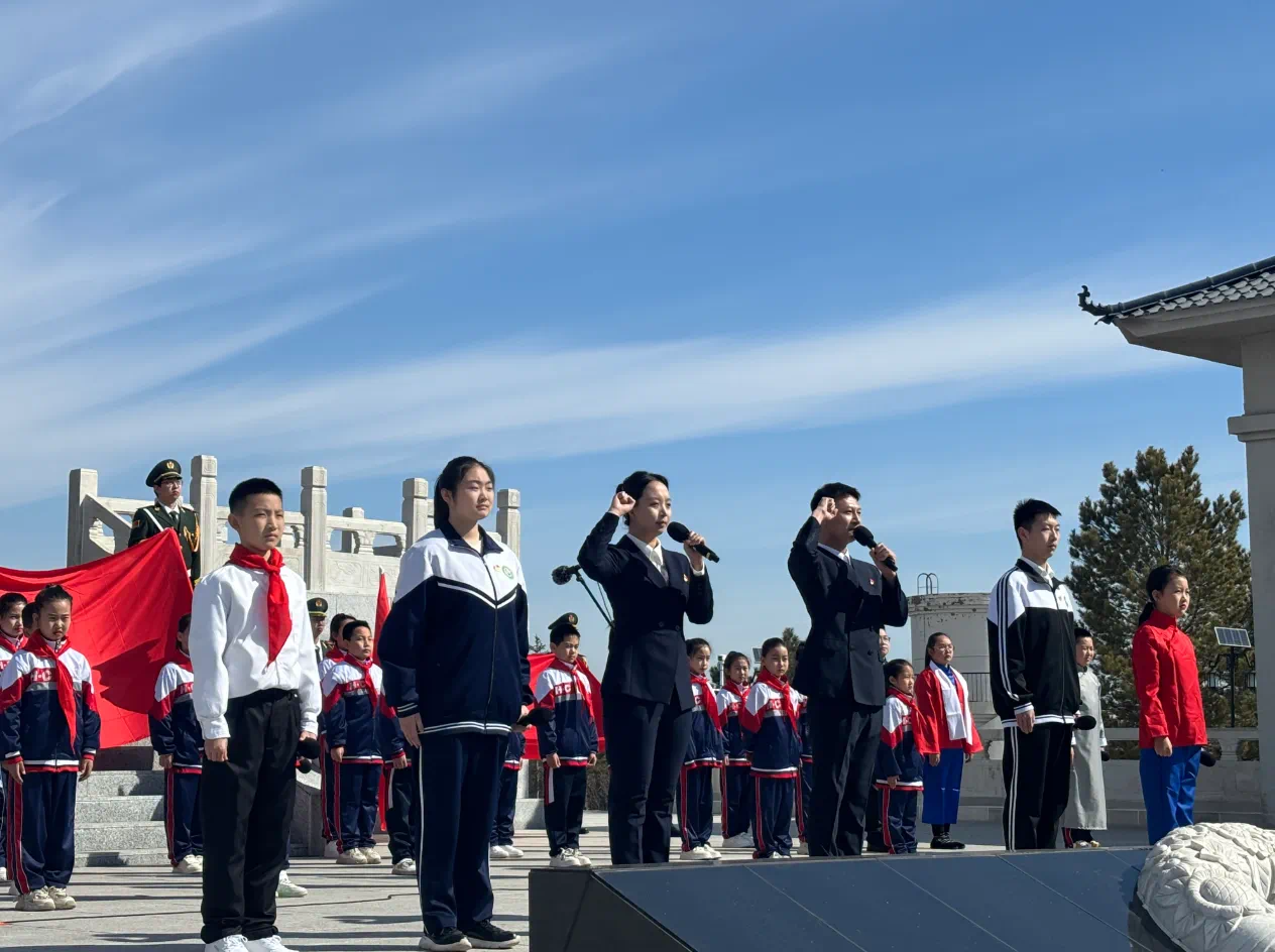 在赤峰市林西縣五十家子鎮(zhèn)烈士陵園,全縣各地黨員、志愿者以及五十家子鎮(zhèn)寄宿制小學師生代表莊嚴肅立,齊聲高唱國歌,表達對革命先烈的深切緬懷。