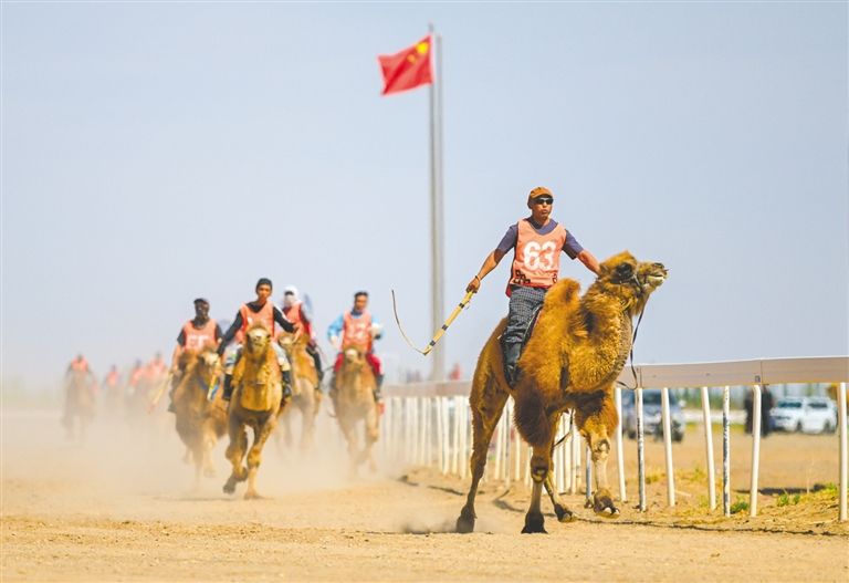 阿拉善盟額濟納旗農(nóng)牧和科技局副局長嚴斌介紹,這次活動總共集結(jié)了大小駱駝2000多峰,馬匹200多匹,還有一些鴕鳥?!跋Mㄟ^舉辦活動,深度串聯(lián)當?shù)剞r(nóng)牧業(yè)、文化產(chǎn)業(yè)與旅游產(chǎn)業(yè),同時不斷豐富全旗各族群眾精神文化生活,展現(xiàn)額濟納旗獨特的民俗風情,全方位宣傳推介額濟納文化旅游品牌?!眹辣笳f。