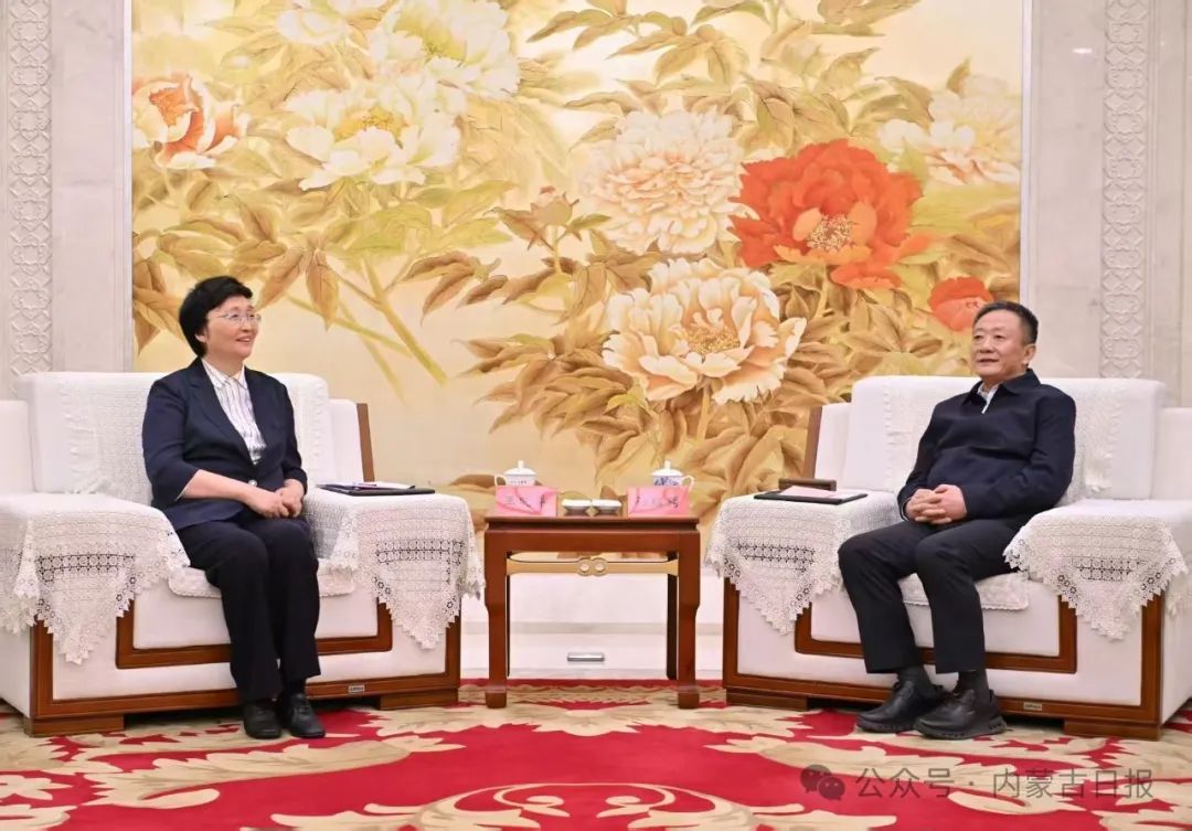 5月12日,自治區(qū)黨委書記孫紹騁在包頭會見人力資源和社會保障部黨組書記、部長王曉萍。草原云·內(nèi)蒙古新聞網(wǎng)記者 馬建兵 攝