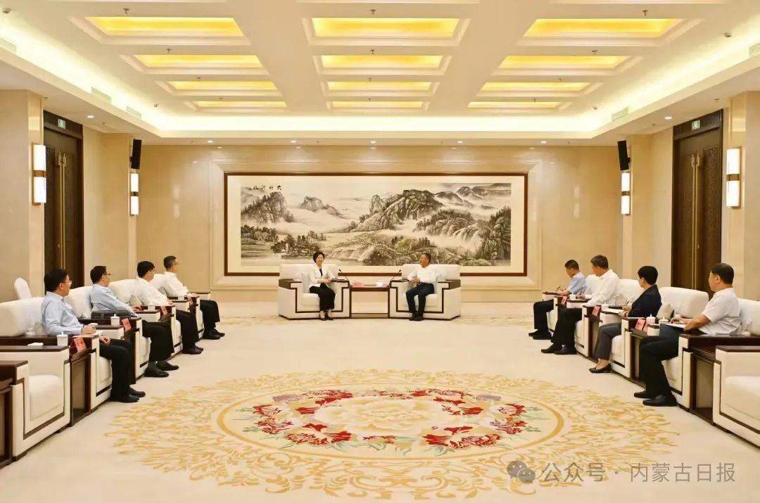 6月23日,自治區(qū)黨委書記孫紹騁在呼和浩特會見海關(guān)總署黨委書記、署長孫梅君。草原云·內(nèi)蒙古新聞網(wǎng)記者 馬建兵 攝