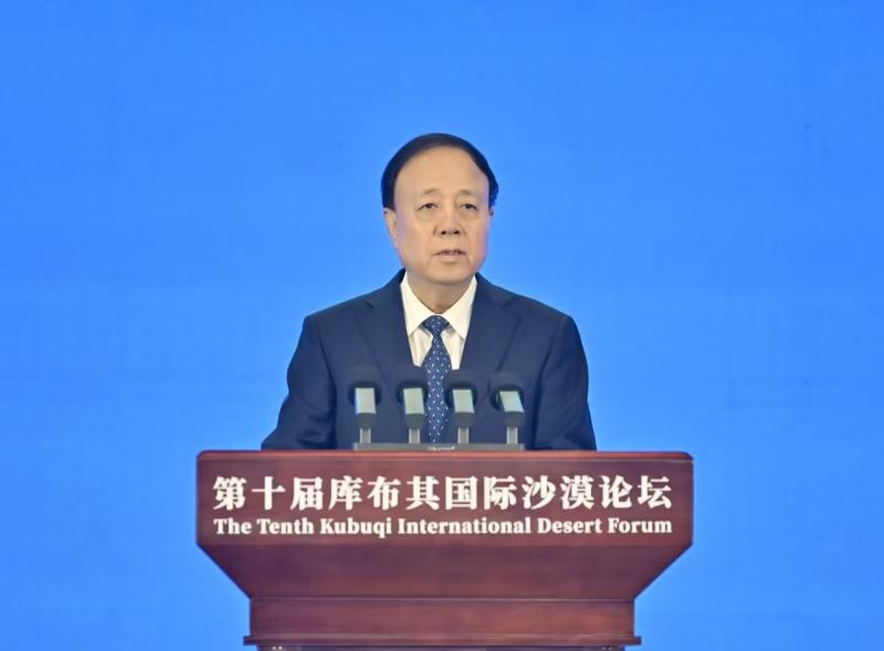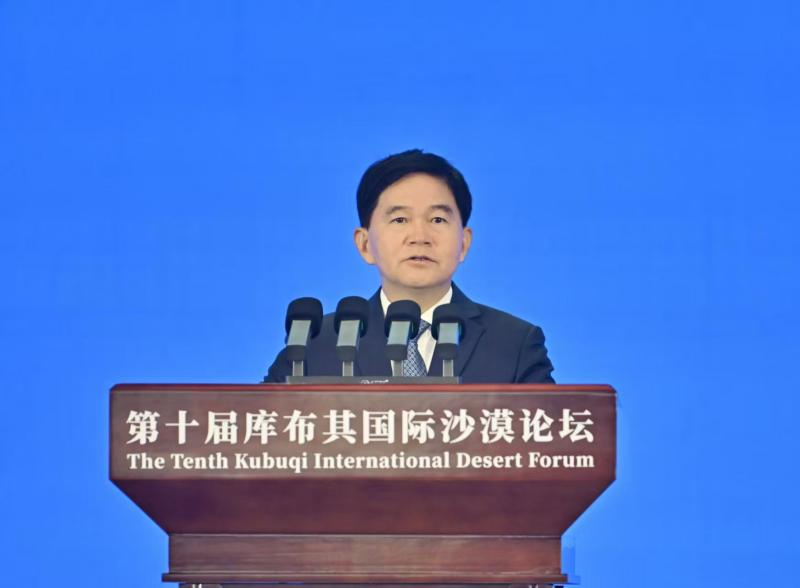 9月16日,國家林業(yè)和草原局局長劉國洪在第十屆庫布其國際沙漠論壇開幕式上致辭。草原云·內蒙古新聞網(wǎng)記者 馬建兵 攝