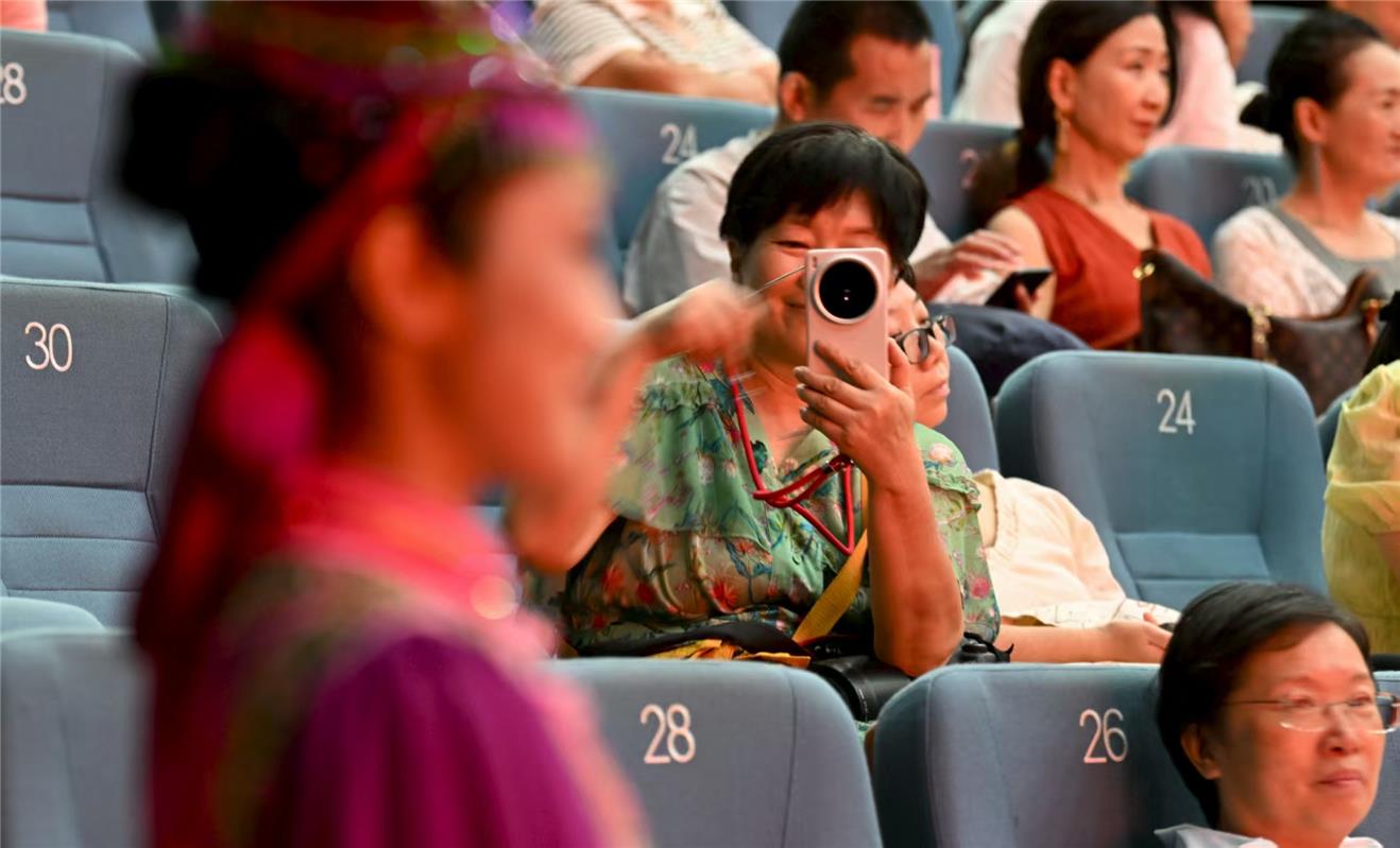觀眾為烏蘭牧騎隊(duì)員拍照。