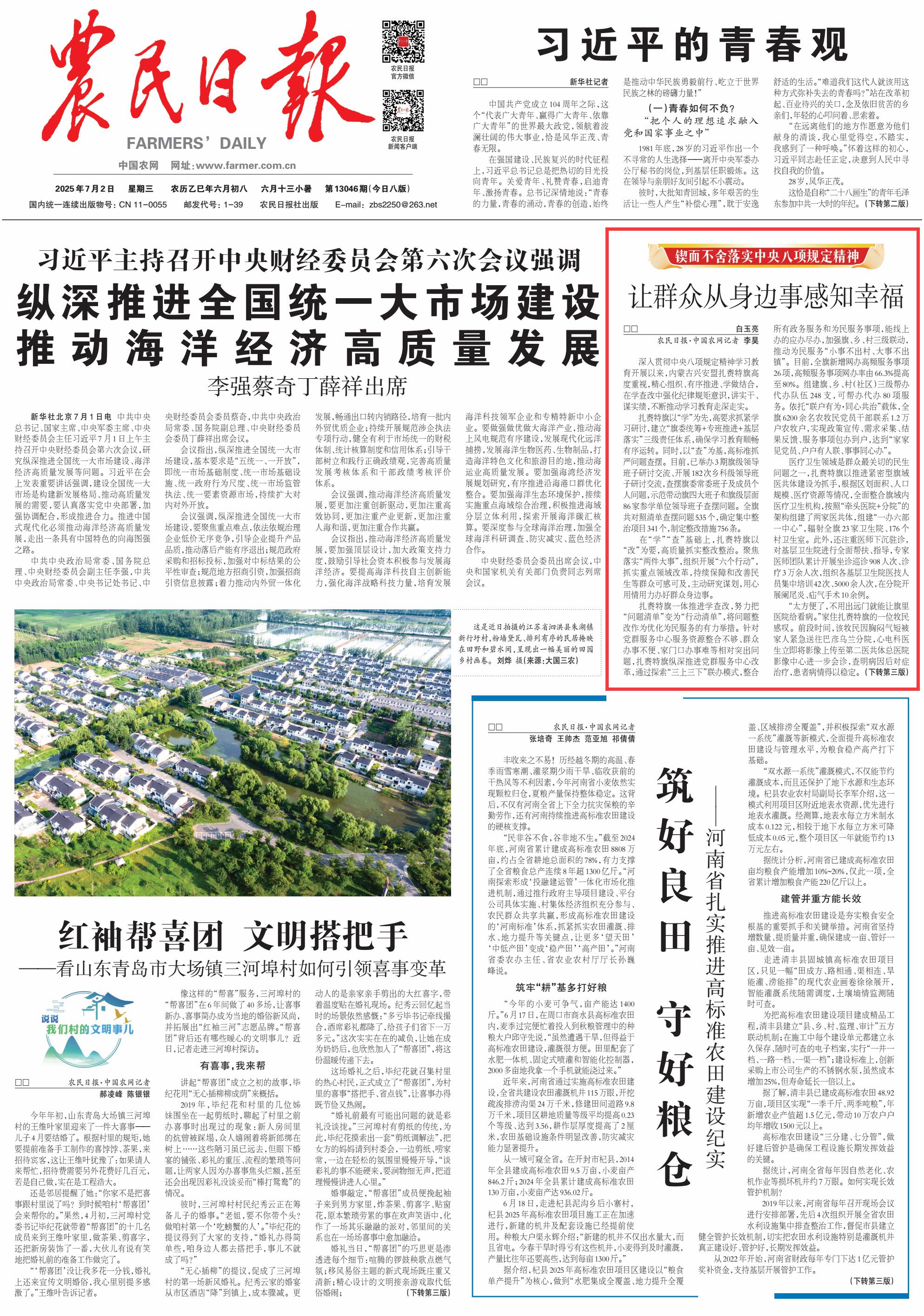 2025年7月2日《農民日報》第1版刊發(fā)了《讓群眾從身邊事感知幸?!返奈恼?,報道了深入貫徹中央八項規(guī)定精神學習教育開展以來,內蒙古興安盟扎賚特旗高度重視,精心組織、有序推進、學做結合,在學查改中強化紀律規(guī)矩意識,講實干、謀實績,不斷推動學習教育走深走實。