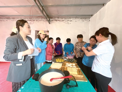 2025年端午節(jié)前,巴仁哲里木鎮(zhèn)宣傳委員、宣傳干事在寶日根嘎查拍攝蒙古族和漢族群眾一起包粽子、制作奶皮子的畫面?!∞r(nóng)民日?qǐng)?bào)·中國(guó)農(nóng)網(wǎng)記者 劉杰 攝