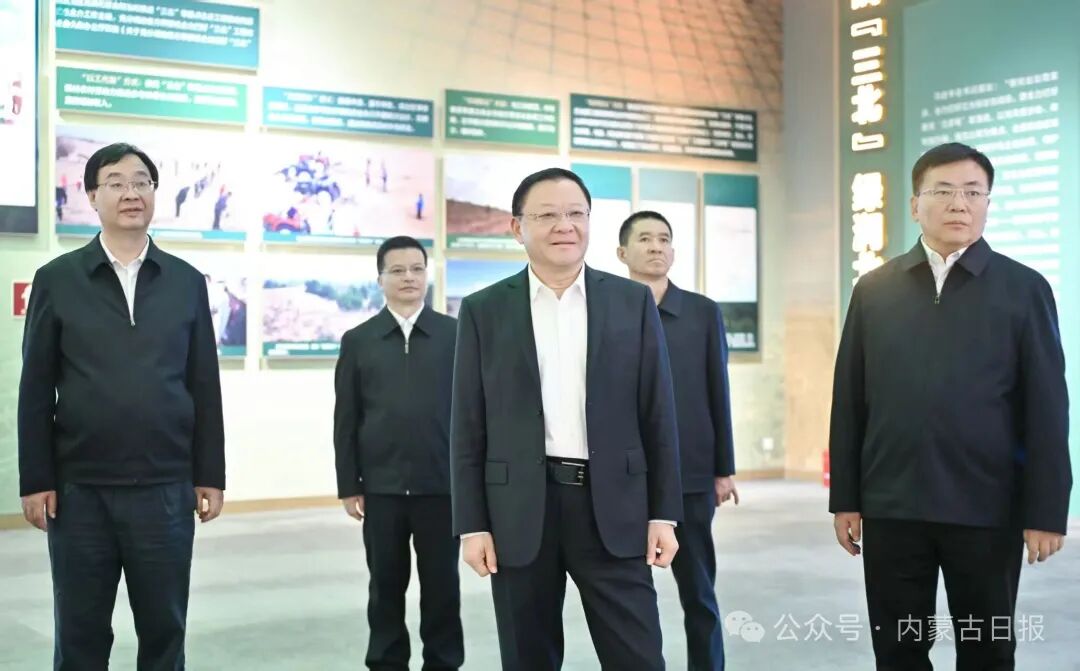10月7日,自治區(qū)黨委書記、人大常委會黨組書記王偉中在內蒙古展覽館參觀“綠色長城 生態(tài)奇跡——內蒙古防沙治沙和‘三北’工程攻堅戰(zhàn)”主題展。草原云·內蒙古新聞網(wǎng)記者馬建兵 攝
