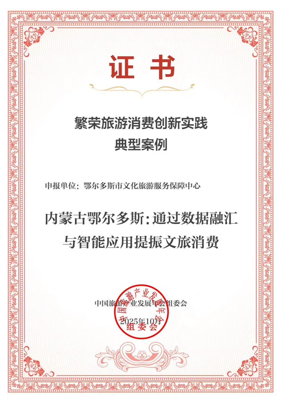 鄂爾多斯市“通過數(shù)據(jù)融匯與智能應(yīng)用提振文旅消費(fèi)”案例入選2025繁榮旅游消費(fèi)創(chuàng)新實踐典型案例。