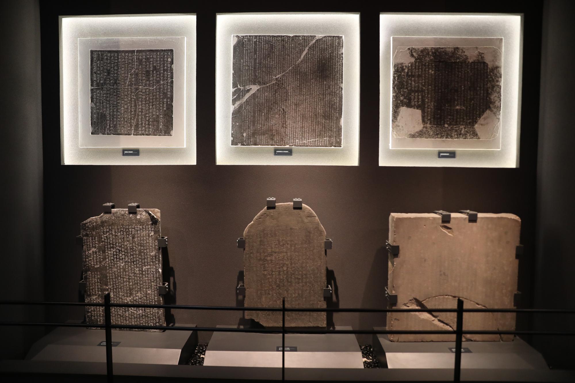 相比之下,耶律祺家族墓的核心價值在于其文字資料。該墓出土的契丹大字墓志刻于遼天祚帝乾統(tǒng)八年(1108年),志石刻契丹大字46行,總計約2930余字,除80余個殘缺字外,尚存2840余字,是考古已發(fā)現(xiàn)的所有契丹大字石刻中字數(shù)最多的一件。