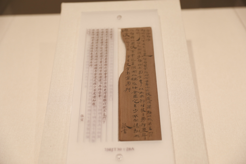 “‘簡(jiǎn)’讀居延—居延遺址出土漢簡(jiǎn)專(zhuān)題展”展出的漢簡(jiǎn)