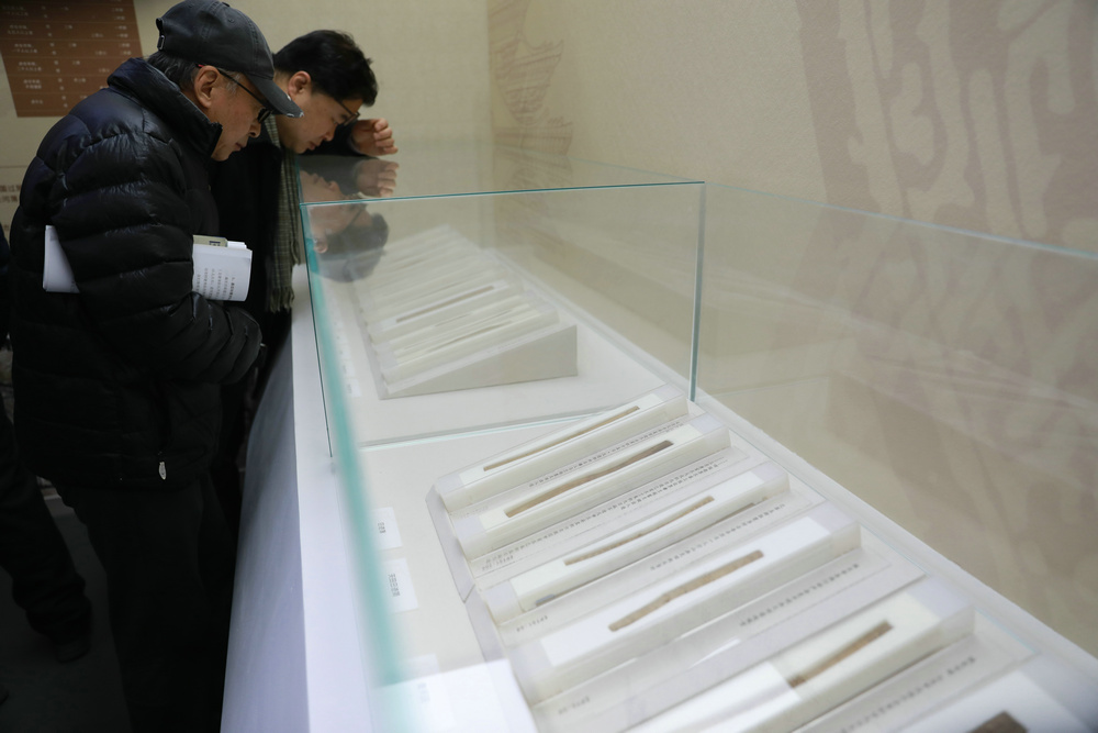 觀眾參觀“‘簡(jiǎn)’讀居延—居延遺址出土漢簡(jiǎn)專(zhuān)題展”