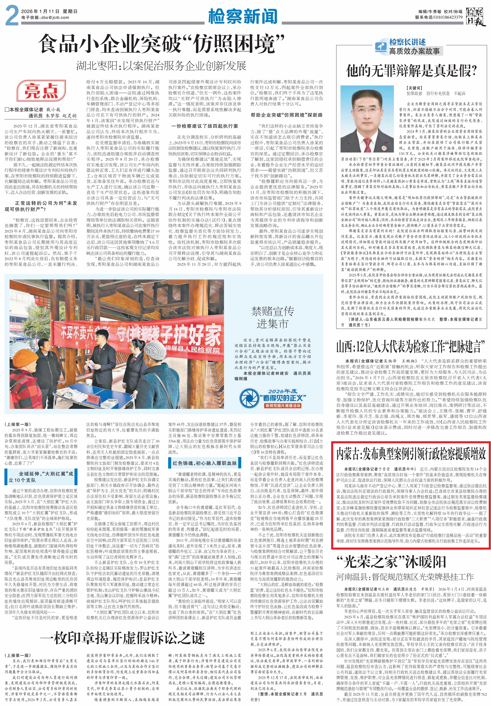 2026年1月11日,《檢察日報》第2版刊發(fā)題為《內(nèi)蒙古:發(fā)布典型案例引領(lǐng)行政檢察提質(zhì)增效》的文章,報道了內(nèi)蒙古自治區(qū)檢察院發(fā)布14個行政檢察典型案例,聚焦“高質(zhì)效辦好每一個案件”價值追求,圍繞行政檢察“三大職責”“八項任務(wù)”,覆蓋行政裁判監(jiān)督、爭議實質(zhì)性化解、行刑反向銜接等重點領(lǐng)域。