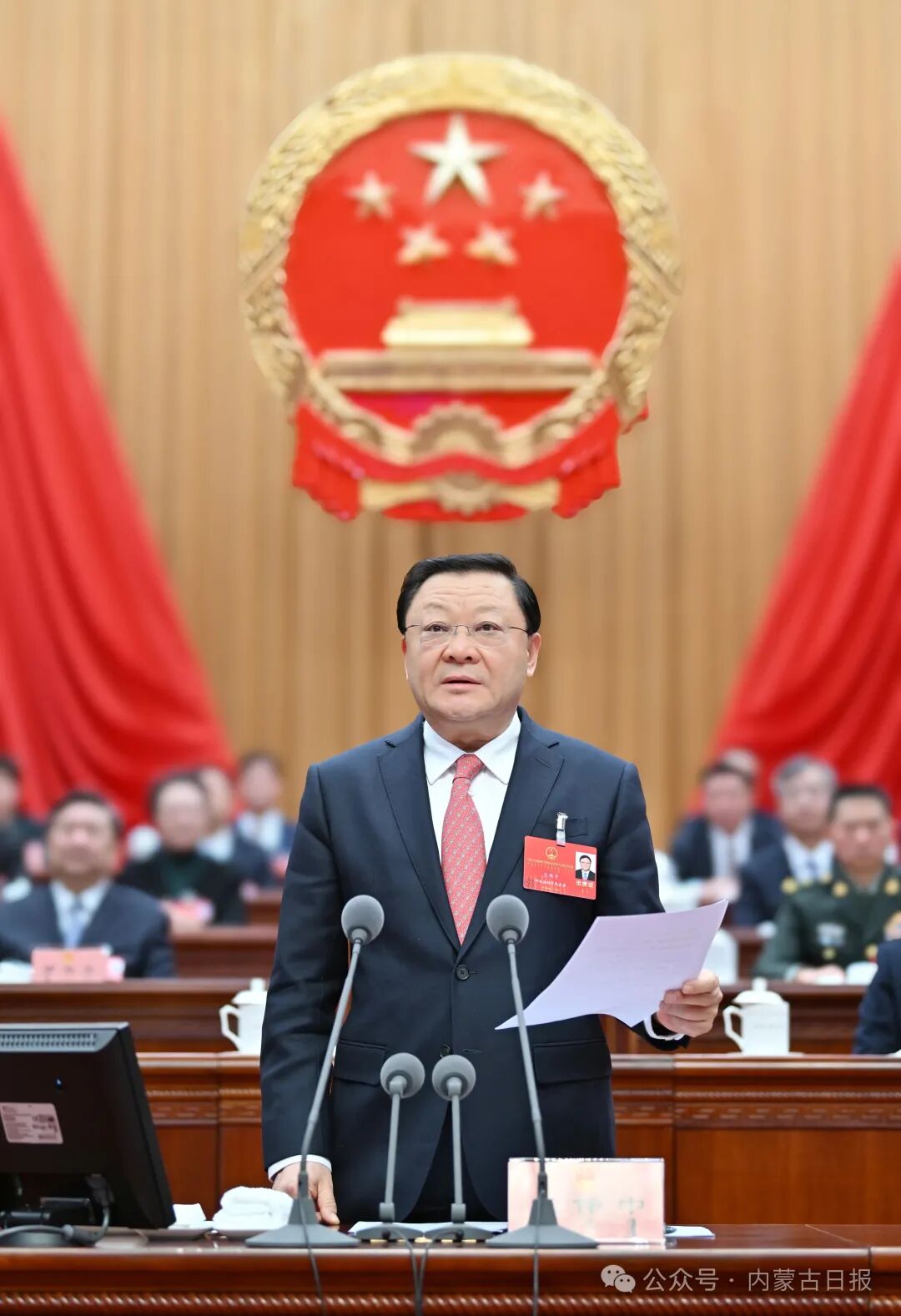 包鋼、張延昆、時(shí)光輝、劉爽、黃志強(qiáng)、胡達(dá)古拉、包獻(xiàn)華、于會(huì)文、陳之常、李東旭、劉春江、奇巴圖、鄭光照、么永波、代欽、孫俊青、唐毅、羅志虎、其其格、魏國楠、安潤生、張磊、張佰成、楊劼、金樁、于仁杰、楊國安、楊宗仁、李永君、郭軍、陳路生等在主席臺(tái)就座。