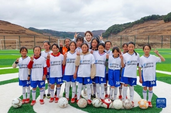 四川省涼山州昭覺縣瓦吾小學(xué)坐落于海拔約2700米的大涼山上,因?yàn)榈乩砦恢闷А⒁荒晁募驹旗F繚繞而得名“云端小學(xué)”。校長曲比史古2018年組建女足球隊(duì),希望通過足球讓這些大山里的女孩子收獲快樂,也獲得更多人生可能性。過去幾年,孩子們都是在一片“手工自制”的泥地球場上訓(xùn)練,經(jīng)常受傷。得知瓦吾小學(xué)的情況后,中國足協(xié)、支付寶以及女足國腳們決定一起為這支校園女足隊(duì)捐贈一座“玫瑰夢想球場”。2022年底,全國第二座中國女足主題球場——“玫瑰夢想球場”在大涼山上落成。