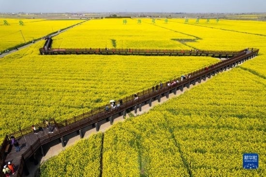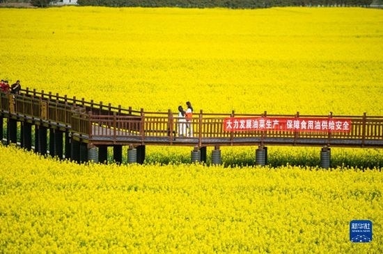 近日,湖南省常德市鼎城區(qū)十美堂鎮(zhèn)種植的數(shù)萬(wàn)畝油菜花競(jìng)相綻放,金燦燦的油菜花海吸引游客前來賞花游玩。近年來,十美堂鎮(zhèn)將油菜產(chǎn)業(yè)與文旅產(chǎn)業(yè)深度融合,帶動(dòng)鄉(xiāng)村餐飲、民宿等產(chǎn)業(yè)發(fā)展,助力鄉(xiāng)村振興。