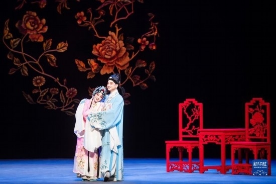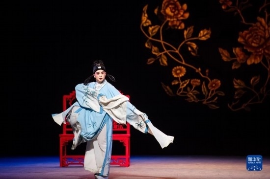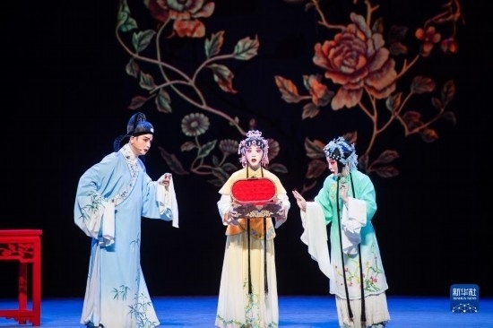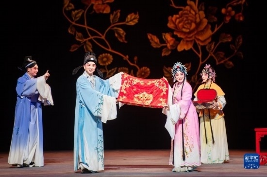 5月15日,演員在舞臺上表演黃梅戲《羅帕記》。