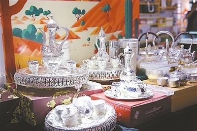 來自伊拉克的Hussein對桌上兩只憨態(tài)可掬的青釉小兔十分著迷。郭利芳則把玩著一只豐腴敦厚的陶瓷小羊:“這是伊拉克朋友自制的陶瓷作品,很有特色!”精致細(xì)膩的青釉小兔,與粗獷厚實(shí)的小羊羔,相映成趣。