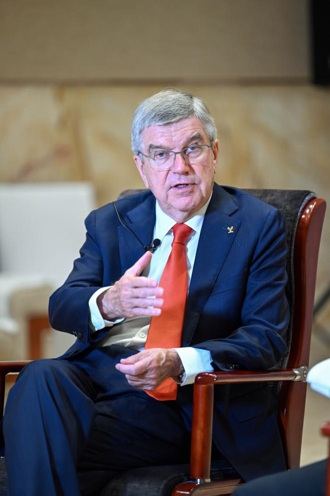 9月22日,國際奧委會主席巴赫在杭州接受新華社記者專訪。新華社記者 曹燦 攝