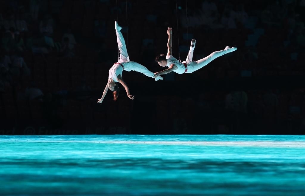 裸眼3D、AR數(shù)字穹頂、3D雙威亞、流體計(jì)算和185米寬、15米高的網(wǎng)幕等技術(shù),實(shí)現(xiàn)了立體美學(xué)和東方美學(xué)的融合,也實(shí)現(xiàn)了技術(shù)和藝術(shù)的雙向奔赴。