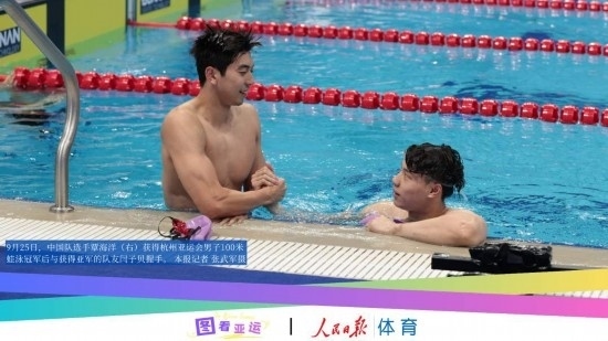 亞運(yùn)賽場(chǎng)不僅有激烈的競(jìng)爭(zhēng),更有真誠(chéng)的交流。杭州亞運(yùn)會(huì)賽場(chǎng)內(nèi)外,友誼之花處處綻放。覃海洋、閆子貝握手慶祝包攬男子100米蛙泳冠亞軍,新加坡隊(duì)選手康占斌向柯潔贈(zèng)送紀(jì)念徽章以示友好,泰國(guó)選手和陳燁碰拳表示祝賀……亞運(yùn)會(huì)既是運(yùn)動(dòng)員們切磋技術(shù)、較量能力的舞臺(tái),也搭建起了溝通的橋梁,充分印證了杭州亞運(yùn)會(huì)“心心相融,愛(ài)達(dá)未來(lái)”的口號(hào)。