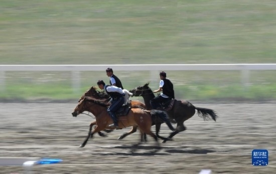 7月16日,牧民在開(kāi)幕式上表演“叼羊”。