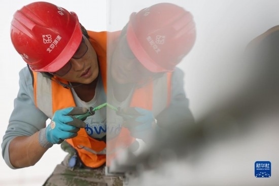 工人在雄安體育中心體育場施工(10月24日攝)。