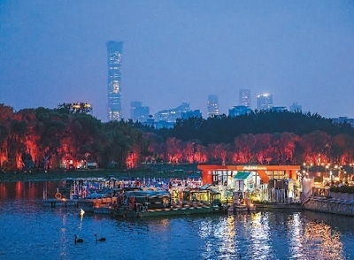 北京市朝陽區(qū)通過建設(shè)亮馬河國際風情水岸,以河道復興引領(lǐng)城市更新,讓市民和游客樂享都市生態(tài)美景,感受多彩首都文化。圖為亮馬河國際風情水岸風光。 王 初攝(人民圖片)