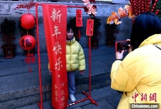 記者見,該民俗博物館還新增了多處新春打卡點,并準備了拍照道具,供人們合影留念。數字裝置也是館內的熱門打卡點,許多小朋友在裝置前盡情體驗3D漢服變裝秀,感受科技與傳統(tǒng)的相融合。
