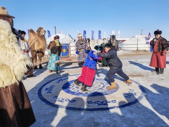 為迎接“十四冬”,呼倫貝爾推出了豐富多彩的文化活動和產(chǎn)品。陳巴爾虎旗的牧民巴圖蘇和與合伙人在莫爾格勒河景區(qū)推出“天天冰雪那達(dá)慕”活動,設(shè)雪地搏克、騎馬射箭、“冰地嘎拉哈”、駱駝爬犁等項目,讓游客沉浸式體驗蒙古族文化與傳統(tǒng)運(yùn)動。首次嘗試雪地搏克的河北固安游客張瑞堂,與一位蒙古族少年友好競技,他的姐姐則用手機(jī)記錄下了這段珍貴的經(jīng)歷。